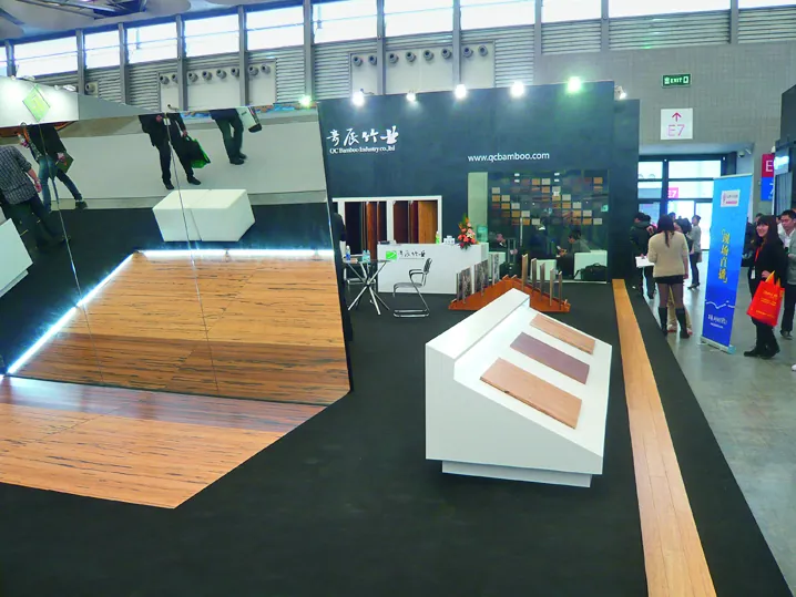 © Bilder: Pitt7 Auch das ist China: Holzfußböden in allen Erscheinungsbildern, von Mickey Mouse bis hin zu orientalischen Teppichmustern. Kein Stand war so frequentiert. -