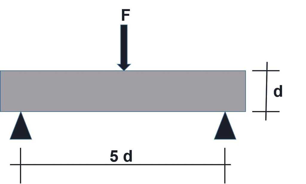 Die Probekörper sollten so fixiert werden, dass sich ihre Unterseiten in der Zugzone befinden. Die Prüfkraft muss als Streifenlast in der Mitte der Stützweite angreifen und bis zum Bruch erhöht werden. Die Biegezugfestigkeit ergibt sich aus der ermittelten Bruchkraft gemäß folgender Gleichung 1