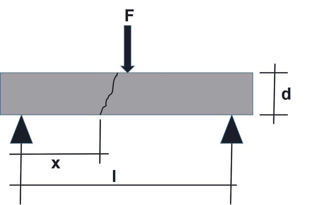 wobei x der kleinste Abstand des Bruchs von den Auflagern ist (Grafik 2).